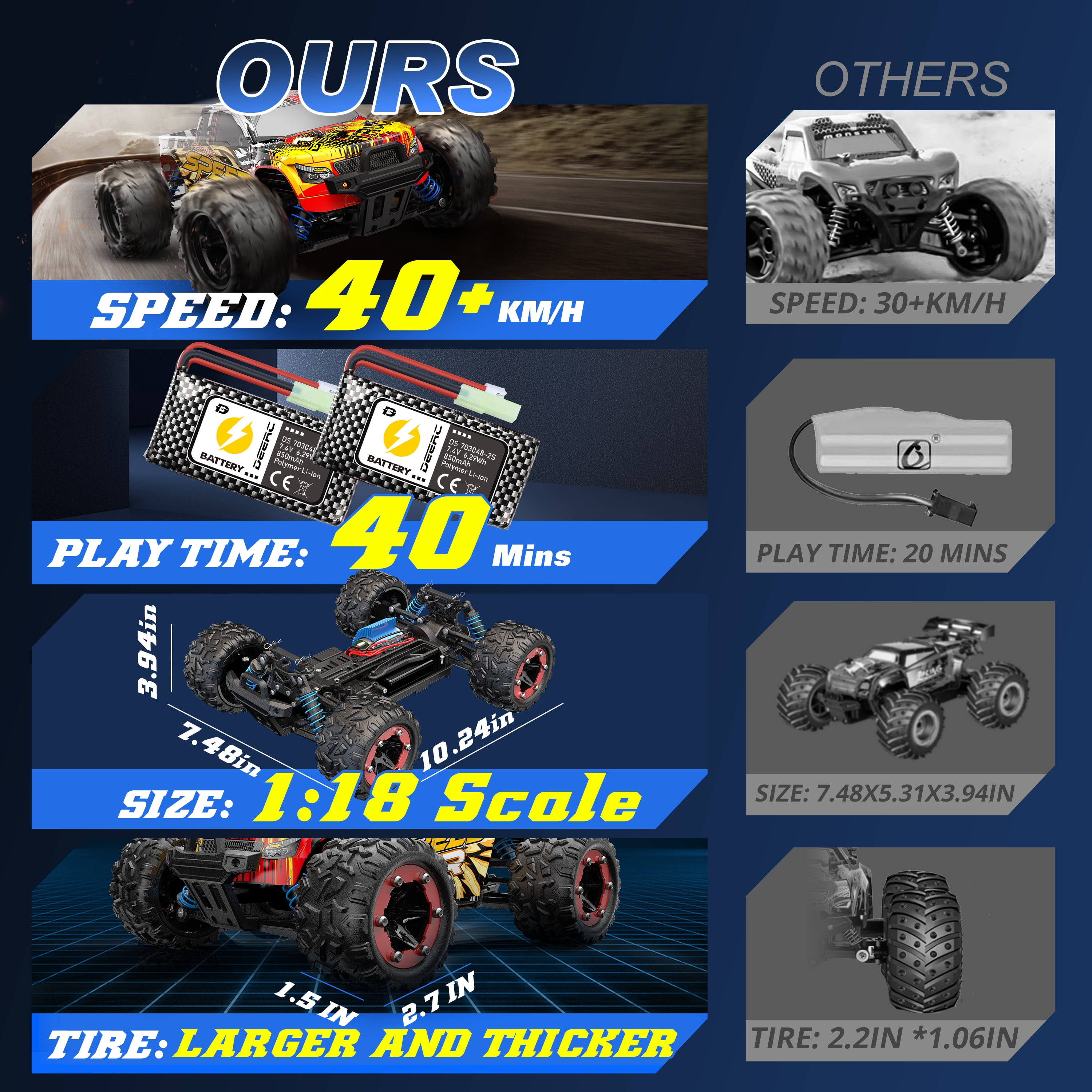 Deerc High Speed Remote Control Car 40 Km H For Adults 4wd Off Road Rc Monster Truck 1 18 Scales 2 4ghz All Terrains Toy For Kids With 2 Batteries Walmart Com